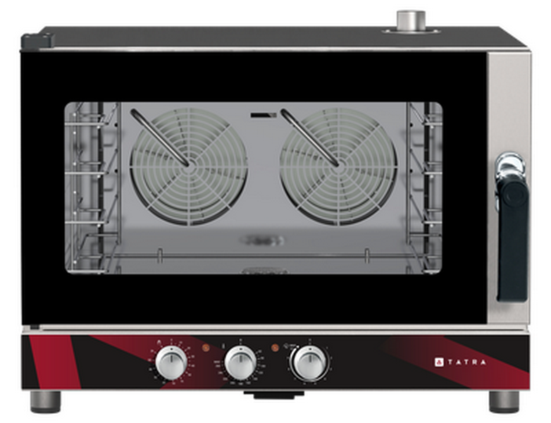 Пароконвектомат Tatra TPI 05 M.VN— предназначен для использования на предприятиях общественного питания для приготовления различных блюд с применением режимов сочетания конвекции и пара. Фактически пароконвектомат может заменить собой несколько типов теплового оборудования, таких как конвекционная печь, жарочный шкаф, пароварка, плита и сковорода.