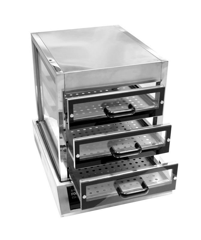 Kocateq ES4Gпредставляет собой пароварку для дим-самов. Модель подходит для оснащения пунктов общественного питания, торговых точек. Устройство подходит для приготовления на пару вареников, мантов, баоцзов и прочих блюд. В конструкции предусмотрено 3-уровневая стеклянная витрина, устройство оснащена термостатом, цифровой панелью и сенсорными кнопками. В качестве материала изготовления применяется нержавеющая сталь.