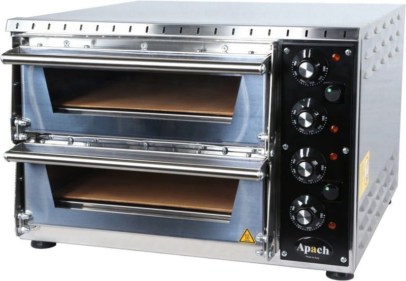Печь для пиццы ApachAMS2изготовлена итальянским производителем для небольших предприятий общепита. Установку используют для выпечки пиццы, круассанов и прочей выпечки, не требующей увлажнения. Корпус изготовлен из стали с алюминиевым покрытием для повышения устойчивости к коррозии. Электропечь имеет 2 рабочих уровня с отдельной панелью управления для каждого. Панель управления для каждой камеры состоит из индикаторов нагрева, регулятора мощности (5 режимов). Установку подключают к сети 220 В.