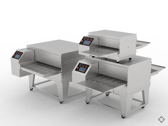 • Внутренние размеры камеры 1014х853 мм и размеры конвейера 1830х812 мм позволяют последовательно загрузить в конвейерную печь до 8 заготовок пиццы диаметром 40 см.;