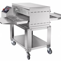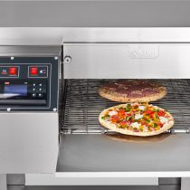 Один из основных плюсов модели – она не требует постоянного контроля со стороны оператора. Повар загружает заготовку с одной стороны, после чего получает готовое изделие с другой. Рабочая температура печи колеблется в диапазоне от 70 до 315 градусов. Внутренние габариты камеры конвейера позволяют загрузить до двух заготовок диаметром до 400 мм. Производительность оборудования может составить до 20 единиц в час.