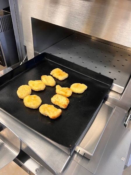 - Благодаря вертикальной подаче горячего воздуха и конвекции продукт нагревается быстро и равномерно;