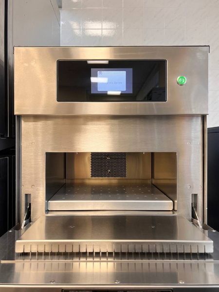 - Дисплей управления содержит — установку времени, температуры, скорость потока, мощность микроволн;