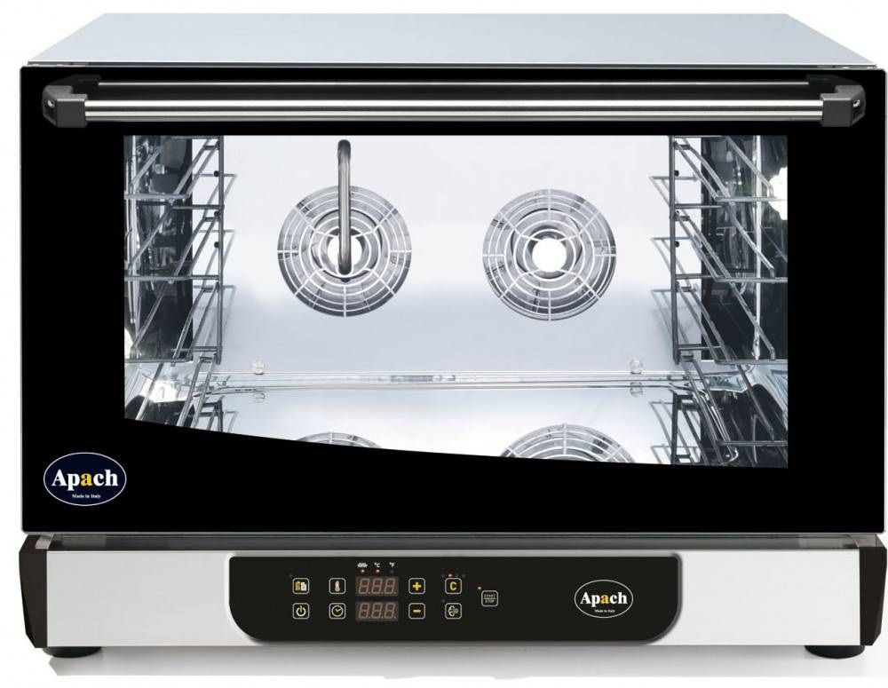 Печь конвекционная ApachAD44ME ECO. Модель небольших размеров профессиональная настольная электрическая. Многофункциональная печь для использования в закрытых помещениях. Подойдёт для небольших ресторанов, пиццерий, столовых, кафе, бистро с небольшим клиентооборотом. Используется для изготовления пышной свежей выпечки, сочных вторых блюд из птицы, рыбы и прочих продуктов. Незаменима для разморозки продуктов, а также разогрева готовых блюд перед подачей.
