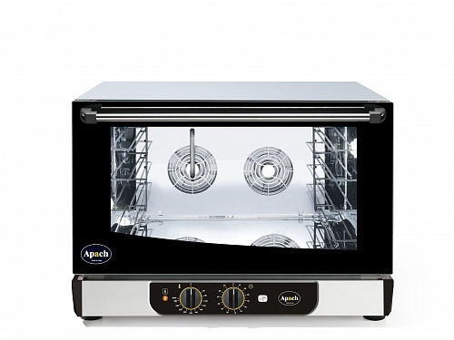 Печь конвекционная Apach AD46MI ECO. Модель настольная профессиональная небольших электрическая. Многофункциональный аппарат для использования в закрытых помещениях. Рекомендовано для небольших ресторанов, кафе, бистро, пиццерий, столовых с небольшим потоком клиентов. Используется для изготовления свежей аппетитной выпечки, замечательных вторых блюд из птицы, мяса и прочих продуктов. Подойдёт для разморозки продуктов, разогрева готовых блюд до подачи посетителям.