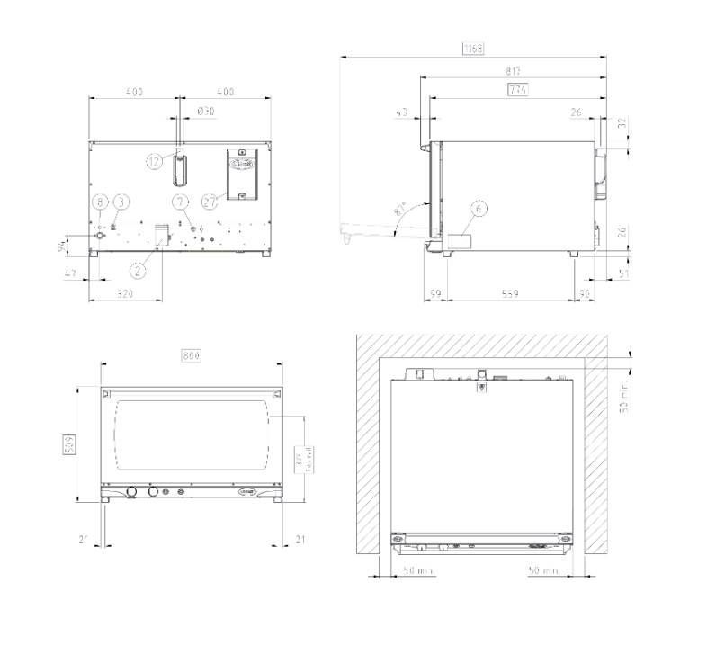 - Дверца распашная с двойным стеклом для удобного обзора во время готовки. Стекло снимается для более простого очищения.