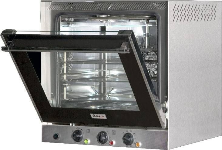 Конвекционная электрическая печь Enteco МН-43 c функцией гриля идеально подходит для приготовления жареных блюд из мяса, овощей и рыбы. Так же с помощью данного оборудования вы легко сможете разморозить замороженные продукты. Камера разделена на 4-ре загрузочных уровня и имеет подсветку. Благодаря продуманной конструкции дверей, которые выполнены из стекла с воздушной прослойкой тепло из камеры сохраняется внутри. Данное оборудование можно устанавливать друг на друга в целях экономии места на кухне. Модель управляется ручными механическими рукоятками. Корпус – нержавеющая сталь. В комплект входят: противни, гриль. Имеется внутренняя подсветка. Пароувлажнения нет.
