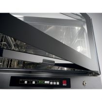 Компактный прямоугольный корпус печи изготовлен из нержавеющей стали. Рабочая камера имеет скругленные углы, также выполнена из пищевой стали и оснащена нагревательными элементами, двумя реверсивными вентиляторами, инжектором для парообразования. Для размещения противней размером 600*400 мм в камере расположены 4 пары направляющих.