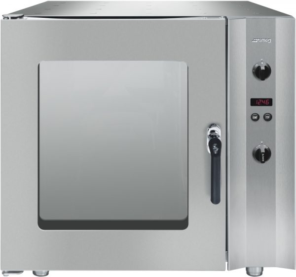 Печь конвекционная Smeg Alfa 241 VE — профессиональная модель с функцией пароувлажнения. Печь выполнена из нержавеющей стали, имеет мощные вентиляторы, режимы увлажнения для быстрого размораживания, подогрева без засыхания, глазирования изделий перед выпечкой. Оснащена полностью открываемой охлаждаемой дверцей с тройным стеклом и системой двухэтапного открытия для выхода пара.