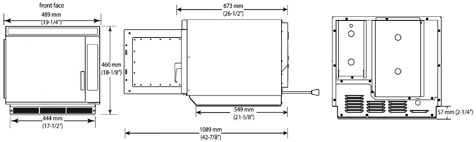 • производительность: горячий бутерброд – 50 шт./ч, замороженные куриные крылышки – 84 шт./ч, замороженная пицца Ø 304 мм – 10 шт./ч;
