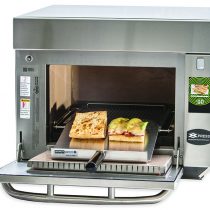 Печь микроволновая Menumaster MXP5223TLT — новинка, которая должна быть на кухне любого крупного ресторана, кафе. Это комбинированная модель. В камере установлены два магнетрона мощностью 2,2 кВт, источник инфракрасного излучения в 5,8 кВт, а также система конвекции 3 кВт. Такое сочетание позволяет увеличить скорость приготовления блюд в 15 раз. Управлять инновационной печью легко и просто — сенсорная панель с LCD-экраном, меню на русском. В память можно загружать до 360 рецептов, также есть возможность программирования мощности и скорости вентиляторов, делать это можно через USB-порт или Wi-Fi.