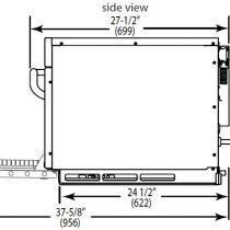 Среди весомых преимуществ данной модели — 11 уровней мощности, 2 съёмных воздушных фильтра, 2 режима разморозки, установлен нейтрализатор жиров, что позволяет использовать печь без вытяжки. ТЭНы установлены на дне и закрыты керамической крышкой. Внутренний объем камеры — 39 литров (406х381х254мм). При необходимости увеличения производительности можно устанавливать печи друг на друга.