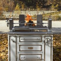- наличие в комплекте поставки 2-х решеток для жарки мяса, 3-х выдвижных ящиков, лопаты и кочерги.