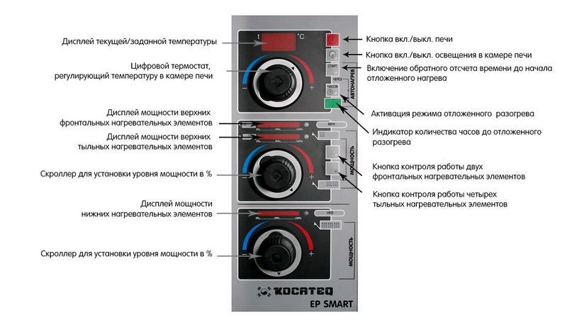 • включение/регулировка нижних и верхних ТЭНов раздельная;