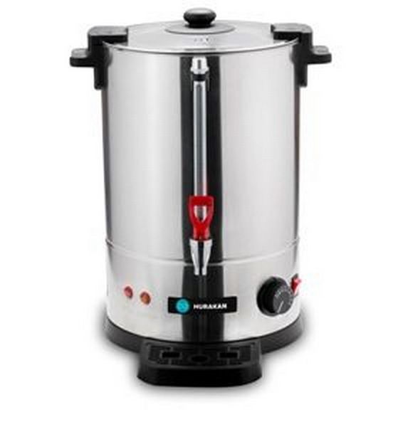 Кипятильник заливной Hurakan HKN-HVC20– быстро подогреет воду и будет хранить температуру столько времени, сколько это необходимо. Оборудование применяется в заведениях ресторанного типа или больших офисах. Изделие изготовлено из нержавеющей стали, устойчивой к коррозии. Внутренний бак сделан из пищевой стали, которая не меняет вкус чая или кофе. Кипятильник подключается к сети 220 В, норма потребления 2 кВт. Аппарат относится к заливным кипятильникам, в которые нужно вручную заливать воду. Для этого в верхней части предусмотрена съемная крышка. После того, как бак наполнен, крышка прочно фиксируется специальными защелками. На фронтальной части находится колба из термостойкого стекла, через которую виден уровень воды внутри кипятильника.