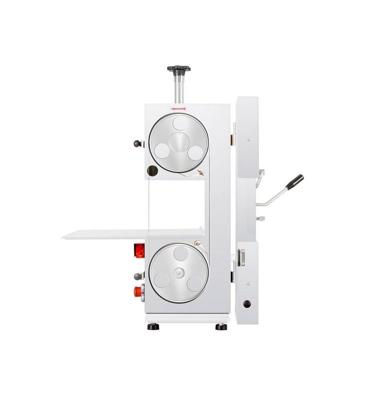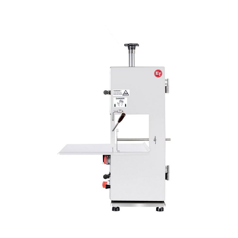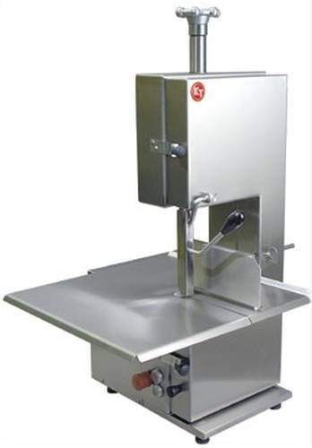 Пила для резки мяса KT 210 ленточная с неподвижным столом. Пила изготовлена из нержавеющей стали и предназначена для нарезки костей животных, замороженных продуктов и очень жесткого/твердого мяса. Нижняя и верхняя боковые опоры режущего полотна из прочного металла гарантируют ровный и гладкий срез. Пусковые выключатели расположены под столом.