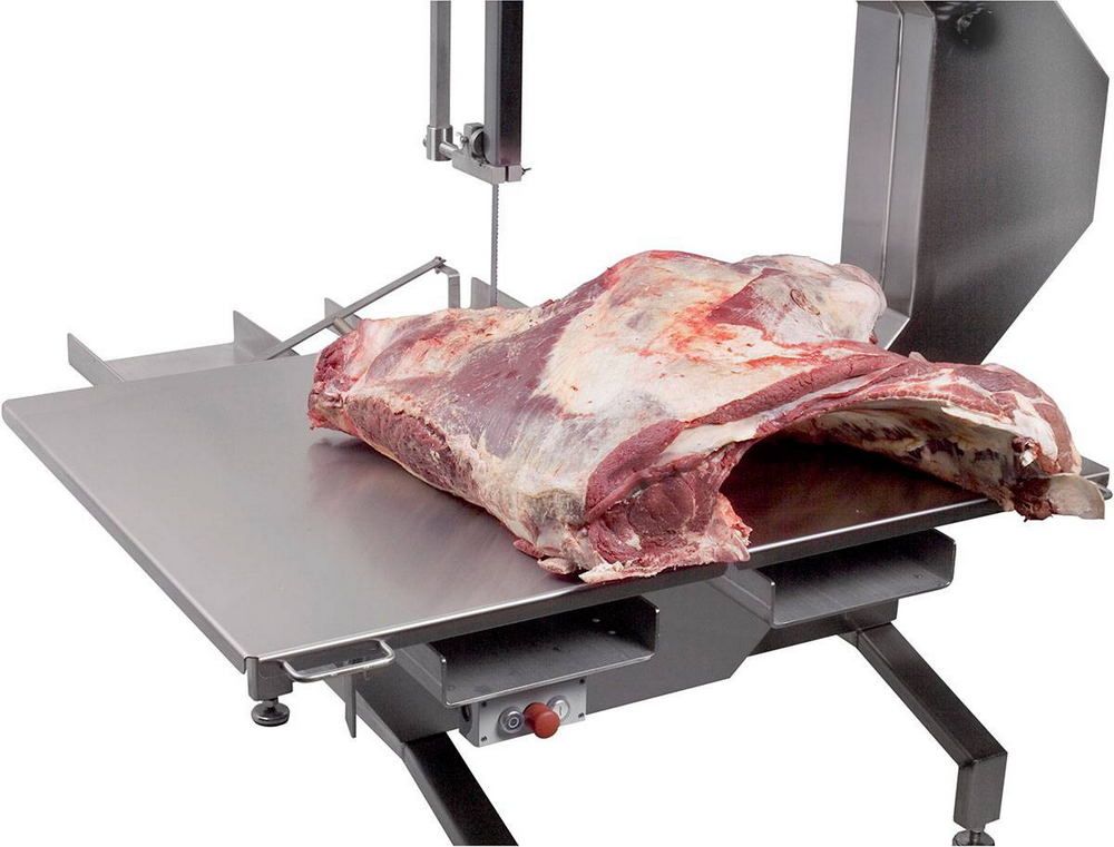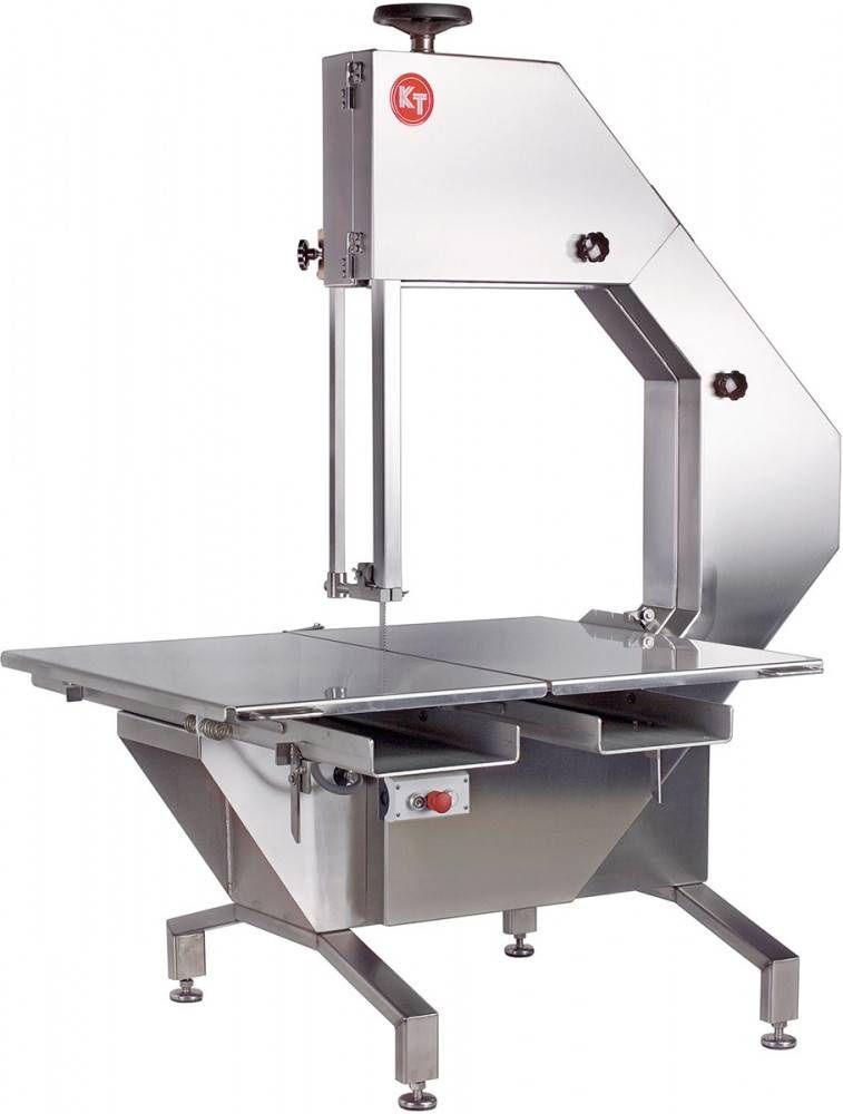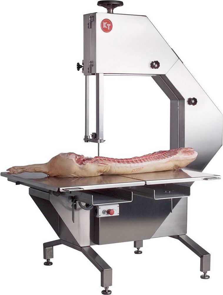 Пила для резки мяса Koneteollisuus (KT)Kt-750– напольная высокопроизводительная модель для распила на равные ровные кусочки рыбы и мяса: свежая или замороженная продукция без крупных костей. Процесс механизации нарезки мяса значительно облегчает работу персонала и ускоряет время выкладки продукции на прилавки супермаркетов и продмагазинов, а также увеличивает производительность при упаковке продукции на пищепроизводстве.