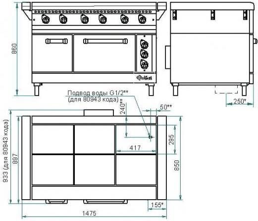 | Размер конфорки, мм | 295×417 |