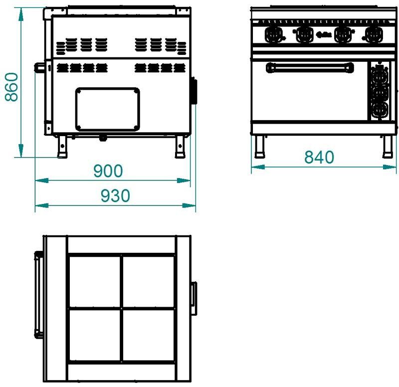 - габариты внутри жарочного шкафа — 535x715x290 мм (3 уровня GN 1/1)