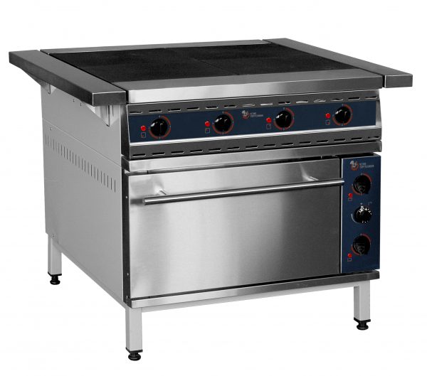 Плита электрическая Челябторгтехника ПЭ-4Ш/0,12 оснащена жарочным шкафом и четырьмя конфорками для варки/жарки/других видов тепловой обработки продуктов. Модель полностью выполнена из нержавеющего сплава, электромеханическое управление обеспечивает простоту использования оборудования. Пользуется особой популярностью в ресторанах, столовых, кафе, других заведениях питания, так как гарантирует бесперебойную работу горячего цеха. Подключение 230 В.