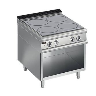 Электрическая напольная плита KovinastrojES-T67/Pна открытой подставке предназначена для приготовления горячих блюд в кафе, ресторанах и местах общественного питания. Модель оснащена 6-ю квадратными, высокими конфорками (300х300 мм). Корпус – нержавеющая сталь. Под рабочей поверхностью имеется нейтральный открытый шкаф для хранения кухонной утвари. Время нагрева конфорок 15 минут. Мощность 15 кВт.