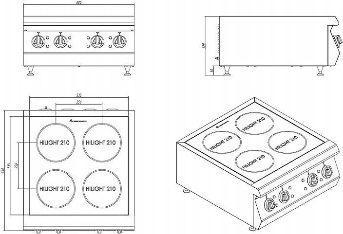 - благодаря четырем зонам нагрева повышается производительность работы кухни;