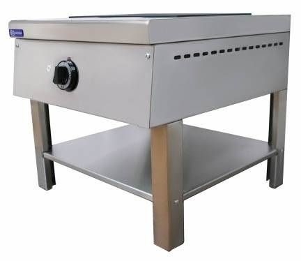 Электрическая плита KAYMAN ПЭ-1-111-МХ представляет собой рабочую поверхность, установленную на подставку в виде табурета. Между ножками подставки предусмотрена полка для размещения чистой посуды, полуфабрикатов или готовых блюд. Корпус плиты и все элементы подставки изготовлены из нержавеющей стали.