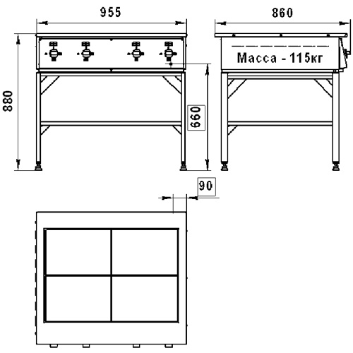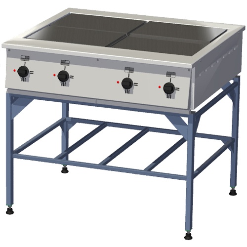 Плита электрическая Тулаторгтехника ПЭ-0,48Нт без жарочного шкафа, на подставкеотлично подойдёт предприятиям питания, где меню состоит из традиционных блюд. За счет того, что установлено 4 плоские конфорки (417х290 мм), электроплита имеет хорошую производительность. Материал корпуса плиты — нержавеющая сталь, подставка — из профильной стальной трубы с порошковой покраской. Конструкция конфорок предусматривает возможность их откидывания, что делает удобным очистку плиты, ремонт.