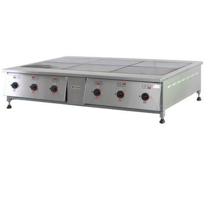 Плита электрическая настольная ТулаторгтехникаПЭ-0,72Н— настольная, но высокопроизводительная модель, позволяющая одновременно готовить разные блюда, так как оснащена 6-тью конфорками размером 417х290 мм. Устойчиво устанавливается на любой поверхности стола/тумбы – это позволяют регулируемые ножки.