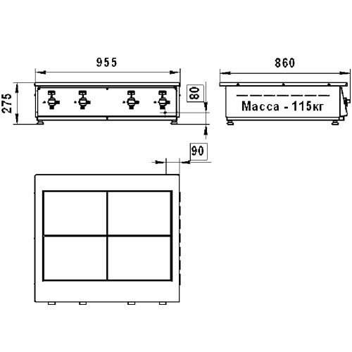 Плита электрическая настольнаяТулаторгтехника ПЭ-0,48Нисполнена в настольном варианте, оснащена 4-мя плоскими конфорками из пищевого чугуна (КЭ-0,12). Удобное регулирование мощности конфорок посредством пакетных переключателей, расположенных под рабочей поверхностью. Под конфорками есть поддоны для сбора жира.