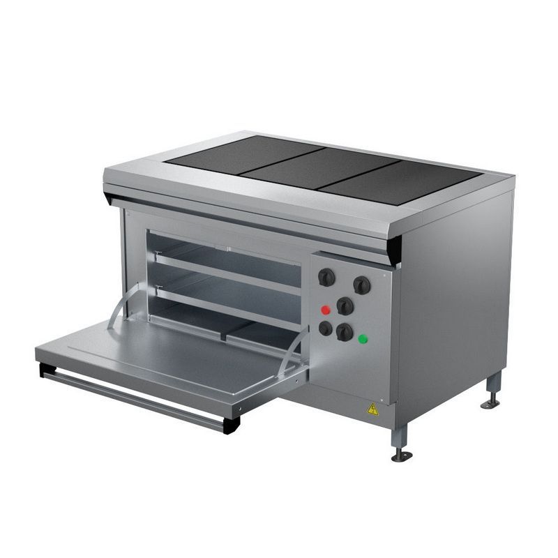 Плита электрическая ПроммашПЭ-0.51Ш– полноразмерное оборудование для кухонь предприятий питания с конфорками для жарки, тушения, варки и духовым шкафом, объемом 137 л, для запекания и томления, а также для выпечки кондитерских изделий, булок, пирожков.