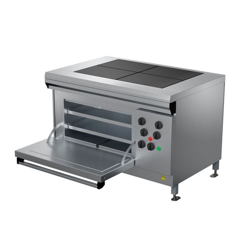 Плита электрическаяПроммаш ПЭ-0.48ШП– профессиональное кухонное оборудование горячего цеха с четырьмя конфорками и духовым шкафом, предназначенное для выполнения всех процессов, связанных с термической обработкой продуктов.