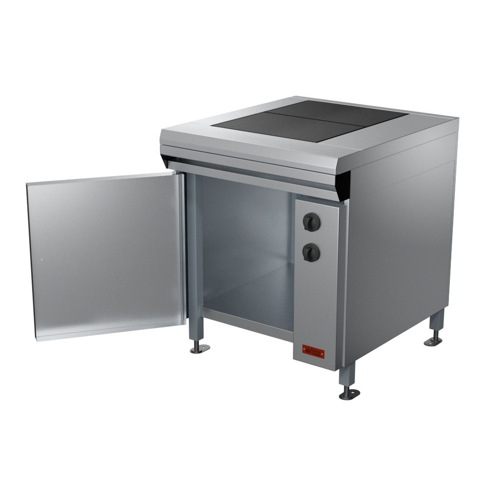 Плита электрическая Проммаш ПЭ-0.24ИП – компактное электрооборудование для предприятий питания с небольшим клиентооборотом. Тумба под плитой представляет собой нейтральный шкаф, предназначенный для хранения инвентаря, посуды или других кухонных приспособлений.
