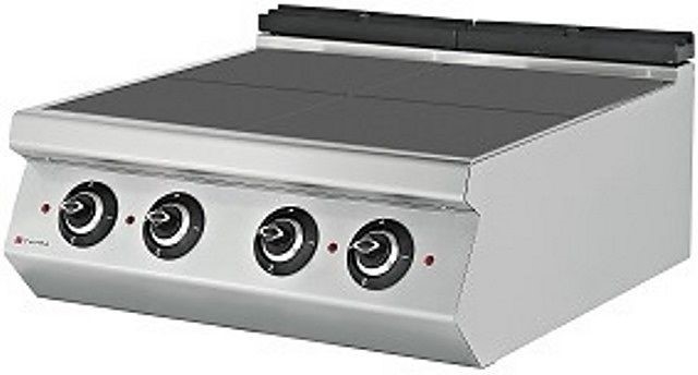 Tatra TER.87 700 сер. представляет собой электрическую плиту для настольной установки. Модель предназначена для приготовления широкого перечня блюд с использованием наплитной посуды. В конструкции предусмотрено 4 чугунные конфорки, образующие сплошную поверхность. На корпусе установлена электромеханическая панель управления, поворотные регуляторы позволяют выбрать одни из 3 уровней мощности нагрева. В качестве материала изготовления корпуса используется нержавеющая сталь.