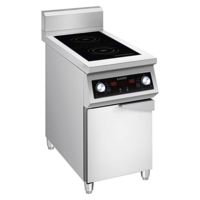 Viatto VA-500G2представляет собой электрическую плиту профессионального класса. Модель предназначена для оснащения торговых точек, пунктов общественного питания, пищевых производств. Варочная панель выполнена в виде единой поверхности. На корпусе установлена электромеханическая панель управления наклонной формы. Для индикации режима работы предусмотрен светодиодный цифровой дисплей. Для изготовления корпуса плиты применяется прочная нержавеющая сталь.