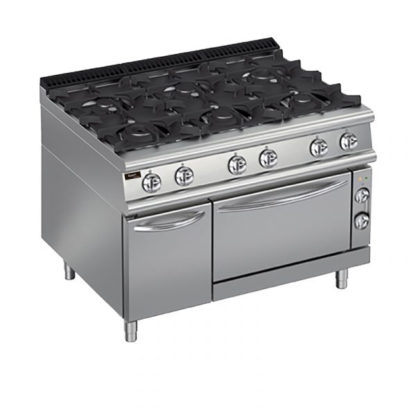 Газовая плита с 6 конфорками и духовкой Apach Chef Line LRG129FECS.