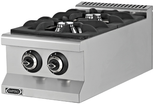 Плита газовая Empero EMP.7KG010-2016с двумя конфорками. Предназначена для приготовления первых, вторых и третьих блюд в наплитной посуде на кухнях ресторанов, кафе, столовых и точек общественного питания. Каждая горелка имеет свой контроллер.