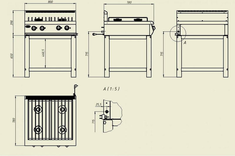 Плита газовая GRILL MASTER Ф4ПГ/800 (на подставке) купить с гарантией в Москве по низкой цене с доставкой по России у официального дилера. Возможность покупки в кредит