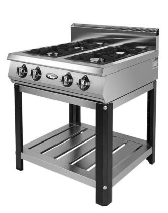 Газовая напольная плита от фирмы KOVINASTROJ модель PS-T47/1 предназначена для приготовления и разогрева горячих блюд в местах общественного питания, столовых и ресторанах. Модель оснащена духовым шкафом, 4-мя конфорками, пьезорозжигом и автоматическим запальником. Для удобства эксплуатации модель оснащена чугунными решетками и вставными поддонами для сбора разлитой жидкости. Корпус – нержавеющая сталь. Управление – механическое. Габариты духового шкафа: 540x570x300 мм.