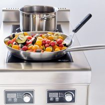 Индукционная плита Abat КИП-29П-5,0-01 представляет 900 серию профессионального оборудования и устанавливается на пол в кухнях предприятий общепита. Устройство используется для приготовления первых, вторых и третьих блюд в специальной посуде из стали и алюминия с плоским ферромагнитным дном или в чугунных емкостях.