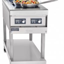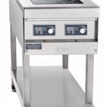 Плита имеет корпус прямоугольной формы, который расположен на подставке с четырьмя регулируемыми по высоте ножками и открытой полкой между ними. Сверху на столешнице находится встроенная рабочая поверхность из стеклокерамики с установленными под ней двумя индукторами, дающими две отдельные зоны нагрева. Плиту охлаждают расположенные сзади вентиляторы с термодатчиками, там же находится воздуховод. Под корпусом установлен съемный жироулавливающий фильтр. Все основные элементы конструкции изготовлены из нержавеющей стали. Управление конфорками происходит с передней панели от двух сенсорных блоков с цифровыми экранами и механическими регуляторами мощности нагрева.