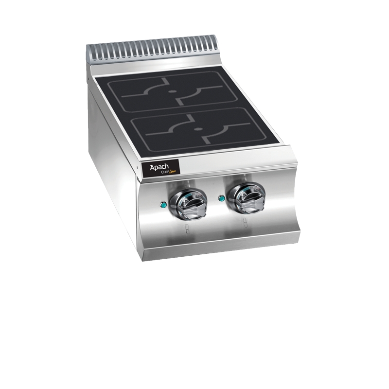 Плита индукционная Apach GLRI49 — модель повышенной мощности, скорость кипячения 5-и литров воды занимает около 1,5-2 мин. Предназначена минимизировать тепловые потери благодаря работе непосредственно с дном посуды (металлическим), а также за счет моментального автоматического отключения питания без наличия утвари на поверхности конфорки.