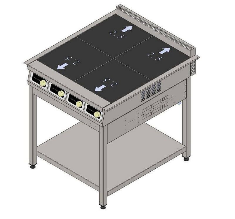 Плита индукционнаяЧелябторгтехника ПЭИ-4– оборудование с высокой производительностью (быстрый нагрев с минимумом потери энергии) и повышенной безопасностью при эксплуатации за счет холодной поверхности корпуса при нагреве посуды и скрытых кромках рабочей поверхности. Плита эксплуатируется в производственных помещениях пищевых цехов и заведений общепита, может устанавливаться совместно с другим оборудованием (900-ая серия).