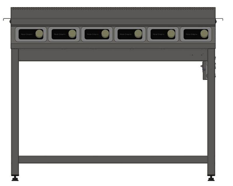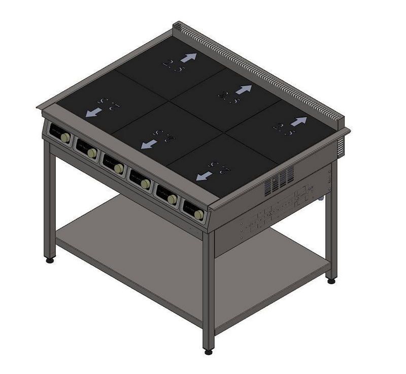Плита индукционная ЧелябторгтехникаПЭИ-6/G2– напольное оборудование от российского производителя с возможностью одновременного использования до 6-ти рабочих поверхностей: большой объем приготавливаемых блюд, возможность производить разные операции в один промежуток времени, без очередности: варка, жарка, пассировка. Индукционный тип нагрева позволяет сократить потребление электроэнергии, обеспечивает высокий КПД оборудования.