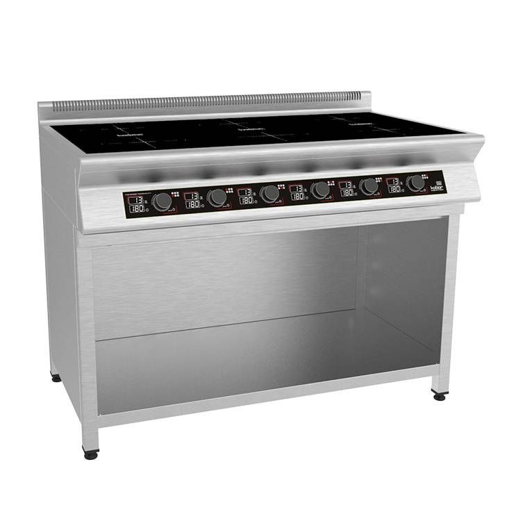 Плита индукционная КОБОР I7-6S1представляет собой индукционную плиту профессионального класса. Модель рассчитана на использование в составе 700-й линии. Оборудование подходит для оснащения пунктов общественного питания, торговых точек. На рабочей панели установлено две индукционные конфорки. Нагрев осуществляется мгновенно, при этом нагревается поверхность посуды, рабочая поверхность разогревается незначительно, что делает использование оборудования безопаснее. Корпус произведен из нержавеющей стали марки AISI304, варочная панель произведена из монолитной прочной стеклокерамики.