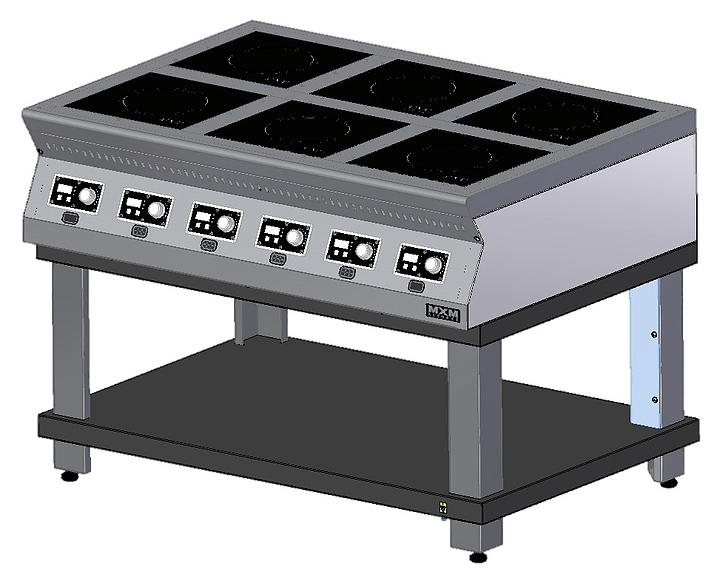 • в конструкции 6 конфорок размером по 300х300 мм и мощностью по 3,5 кВт каждая;