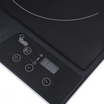 На корпусе предусмотрена электронная панель управления. Она позволяет задать один из 10 режимов мощности. Дополнительно присутствует таймер длительностью от 0 до 180 минут. В конструкции предусмотрена одна конфорка в процессе эксплуатации она не нагревается, что повышает безопасность использования оборудования. Корпус плиты выполнен из пластика, для изготовления рабочей панели использовалась стеклокерамика.