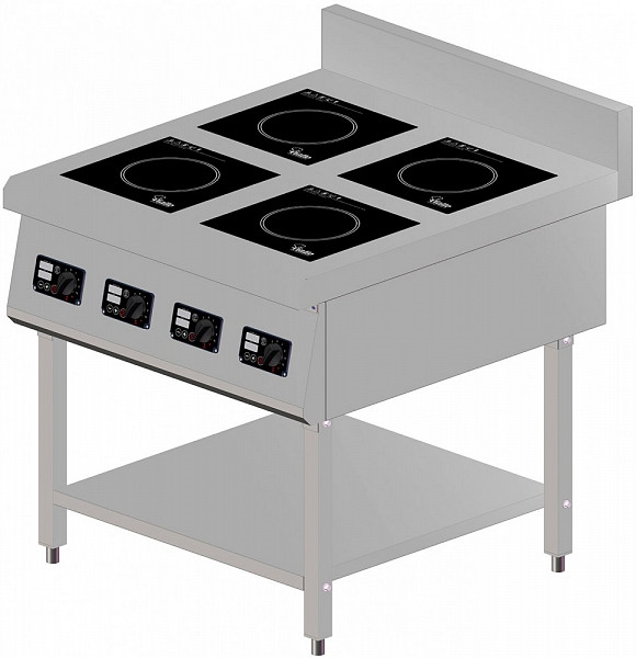 Viatto VA-IC3504 представляет собой индукционную плиту профессионального класса. Модель отлично подходит для оснащения пунктов общественного питания, небольших пищевых производств. В процессе использования благодаря индукционной технологии рабочая поверхность не нагревается, что увеличивает безопасность использования оборудования. Корпус аппарата выполнен из прочной нержавеющей стали. Плита установлена на открытую подставку, в которой предусмотрена полка для хранения кухонной посуды и утвари. На рабочей поверхности расположено 4 зоны нагрева. Для управления предусмотрена электромеханическая панель с регуляторами мощности.