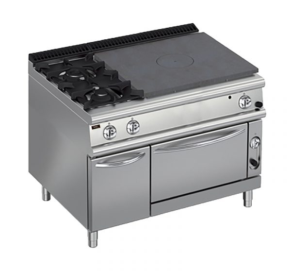 Плита газовая со сплошной поверхностью Apach Chef Line LRSTG129R2FG — имеет комбинированный вариант нагрева конфорок. Главным достоинством использования сплошной поверхности с закрытыми горелками является то, что пламя скрыто под чугунной пластиной.