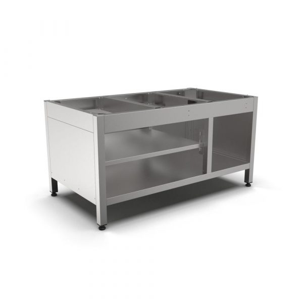 Smart Induction S76 представляет собой полузакрытую подставку. Модель предназначена для оснащения пунктов общественного питания, торговых точек. Оборудование рассчитано на использование с индукционными плитами марки C76, комбинированными индукционными плитами K76, грилей G76. В конструкции предусмотрена полка для хранения инвентаря и посуды. Опорные ножки регулируются по высоте, что позволяет нивелировать неровность пола. Каркас и полка произведены из нержавеющей стали AISI430. Опорные ножки выполнены из трубы квадратного сечения из нержавеющей стали размером 40х40 мм.